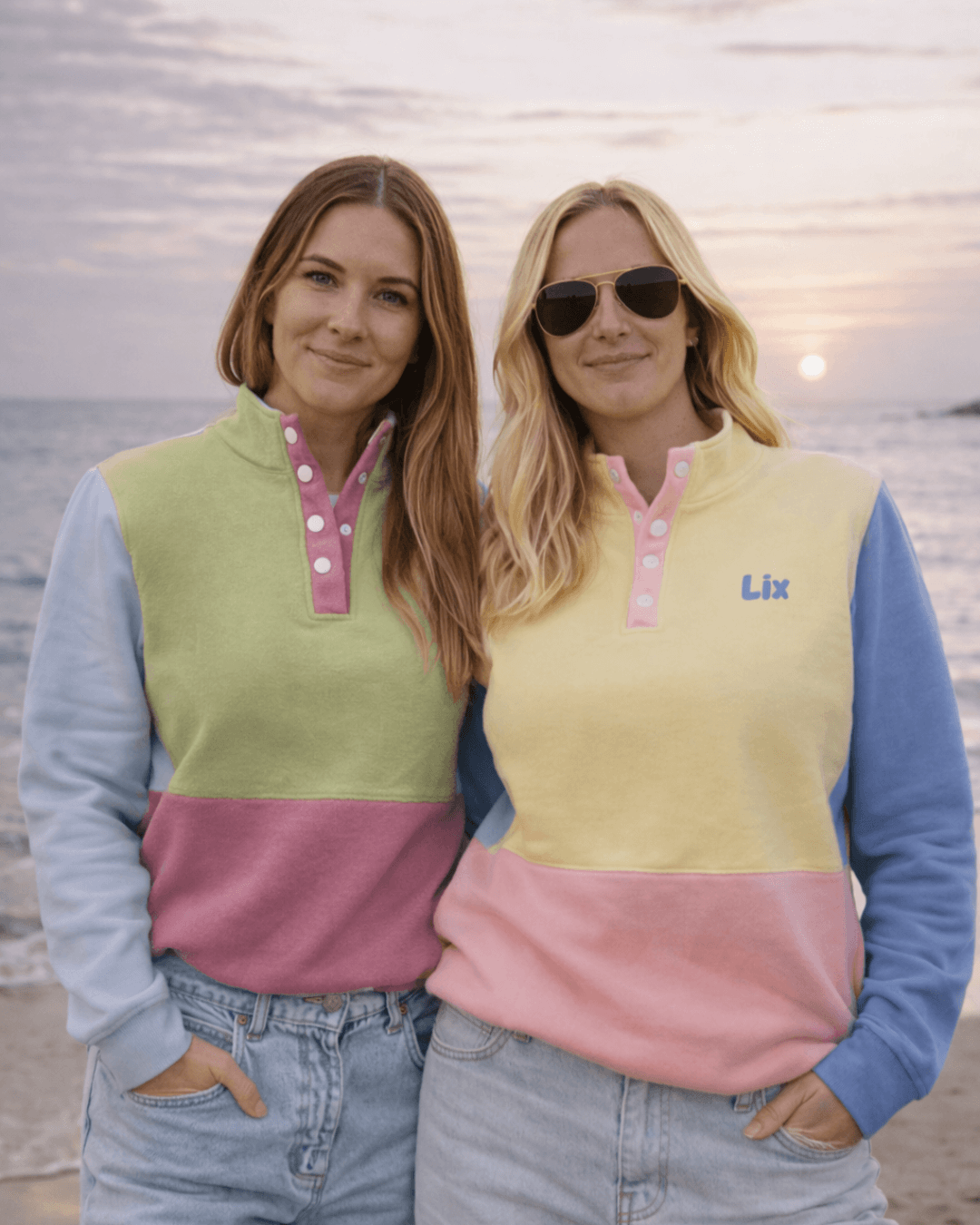 - Retro color block inspired by vintage crewnecks.