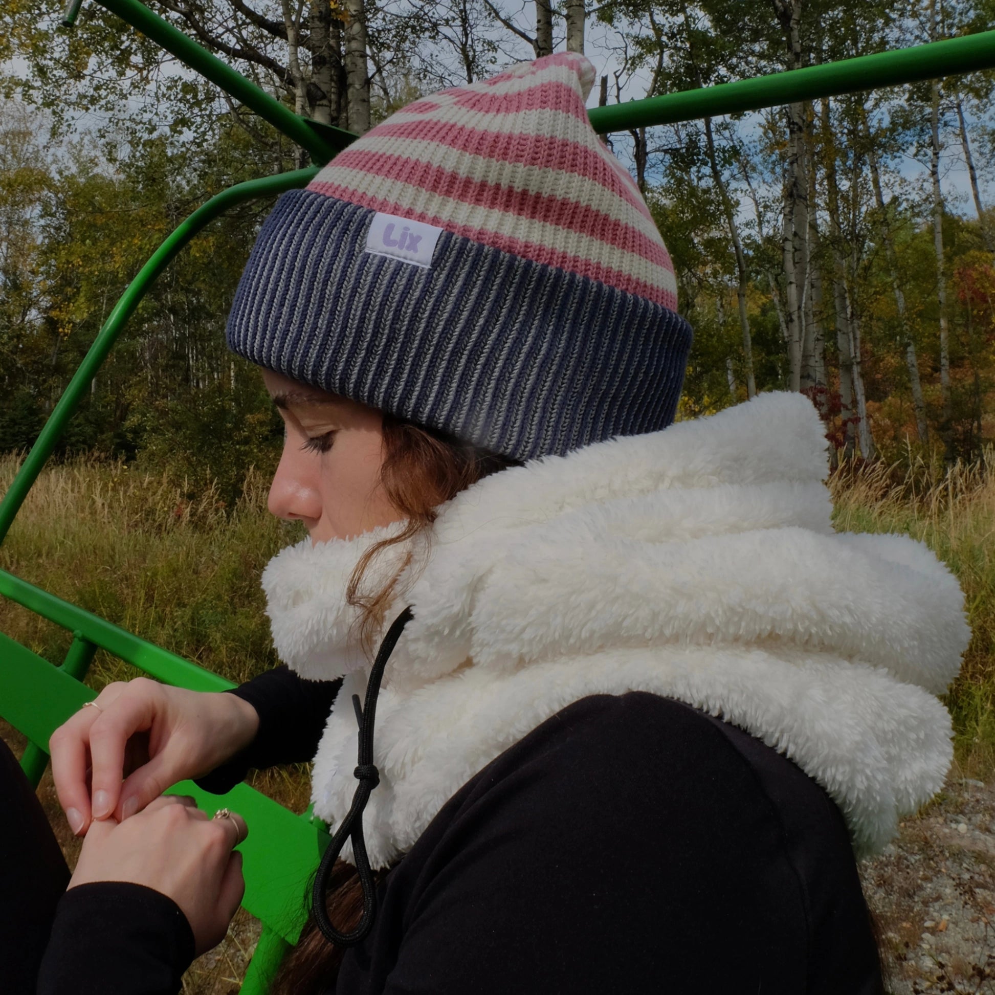 Je porte déjà mes mitaines et le hooder pinky, malgré que nous soyons seulement à l'automne! Ils sont beaux... et confortables! Merci Lix!